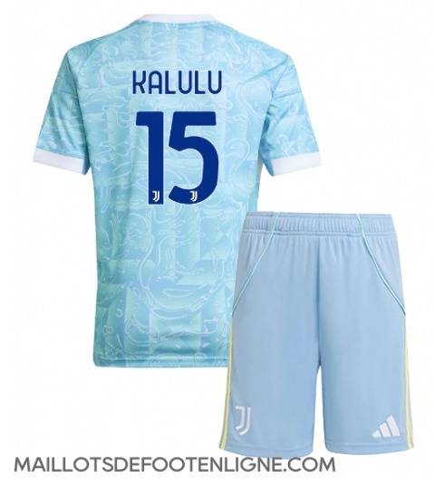 Maillot de football Réplique Juventus Pierre Kalulu #15 Extérieur Enfant 2025-26 Manche Courte (+ Pantalon court)