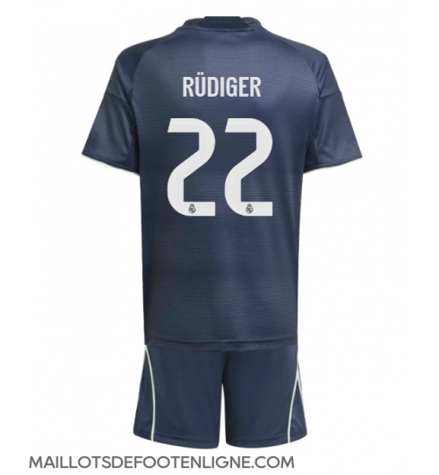 Maillot de football Réplique Real Madrid Antonio Rudiger #22 Extérieur Enfant 2025-26 Manche Courte (+ Pantalon court)